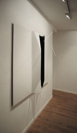 Pensamiento en torno a los enigmas del espacio pictórico, desplazamientos y fingimientos que no esquivan, tampoco, su relación con el vacío siempre desde esa dimensión poética. Parece tentar Ferrer la extensión del espacio, otrora transmutarlo plegándolo o doblarlo sobre sí, secciones o expansiones diversas, fragmentos viajeros en la ingravidez, construcciones trabadas como un cuidadoso forjador de transparencias que revelare el sueño de la agitada vida de las formas. Puertas tal tránsito, pues pareciere encontradas con misteriosos espacios abiertos o imponentes en su misterioso estar obscuro. Es Ferrer, así, otro imaginativo introvertido, otro caballero de la soledad[12], un creador también con algo de pintor gramático, tentador de la elevación de misterios, un artista silencioso frecuentador de un aire extraterritorial en su propuesta, pues siendo pintor de enigmas su mundo ordenado no cesa en plantear formas de aire paradójico que esquivan los meros juegos formales e indaga entrópico, más bien, en una suerte de aporía: en torno al fuego que consume las imágenes. Ciertamente vinculado a algunos de nuestros artistas más líricos pero, a la par, con un aire de soberana independencia en su obra que subraya en el encuentro de lo medido con el aire de accidente. Se eleva Ferrer del ras terrenal. Como en el ciclo de sus De somnis, serie de Pablo Palazuelo en los noventa, las obras de Ferrer semejan ahora embargadas de una cierta letargia y los dispositivos de ensoñación parecen convocarse en algunas de sus puertas pues en ellas Ferrer se desvela como otro soñador de las líneas.